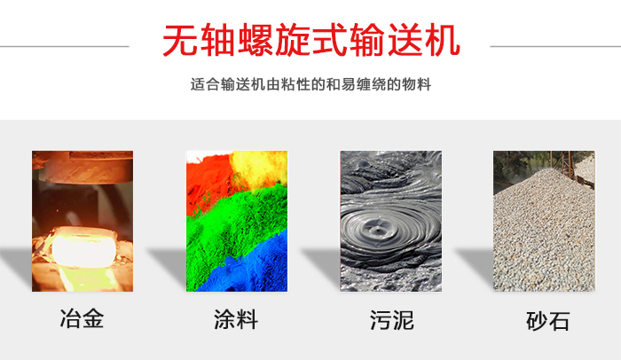 有轴螺旋式输送机适用于无粘性的干粉物料和小颗粒物料.(例如:水泥、粉煤灰、石灰、粮等)而无轴螺旋式输送机适合输送机由粘性的和易缠绕的物料。(例如:污泥、生物质、垃圾等)